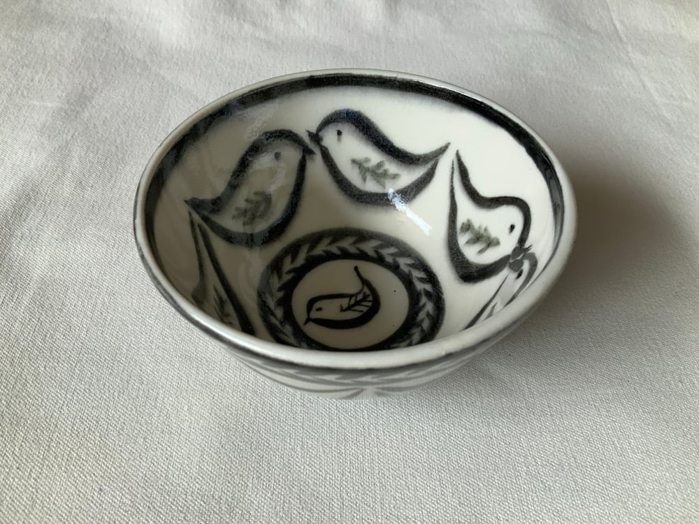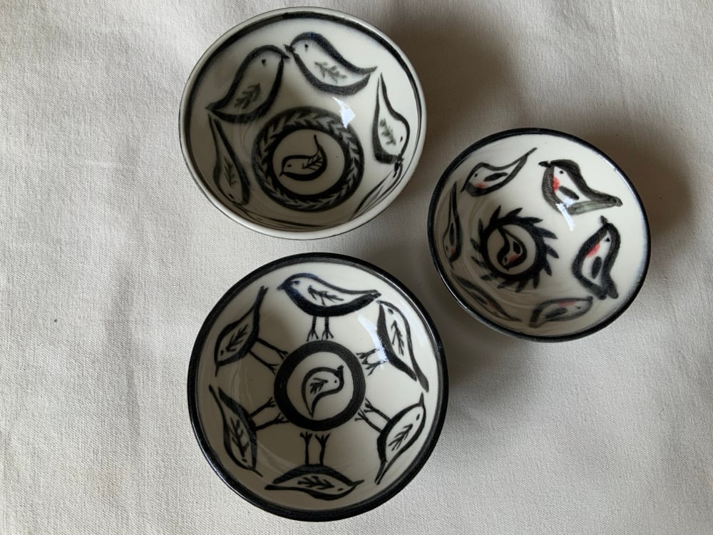 Hand thrown ,turned and individually painted small bowls.