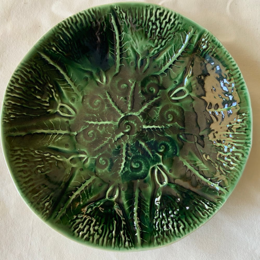 Individually handbuilt plate impressed withTasmanian seaweed.