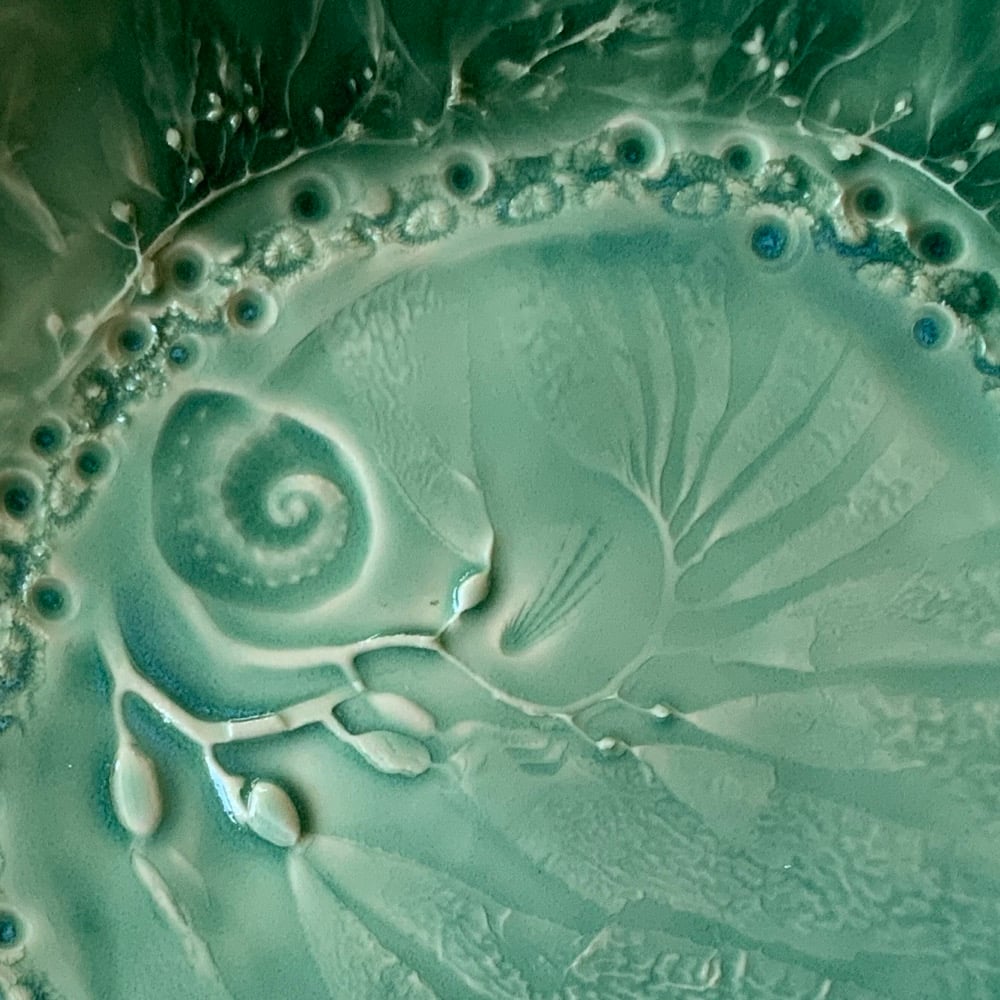 Rockpool serving plates with impressed Tasmanian Seaweeds.